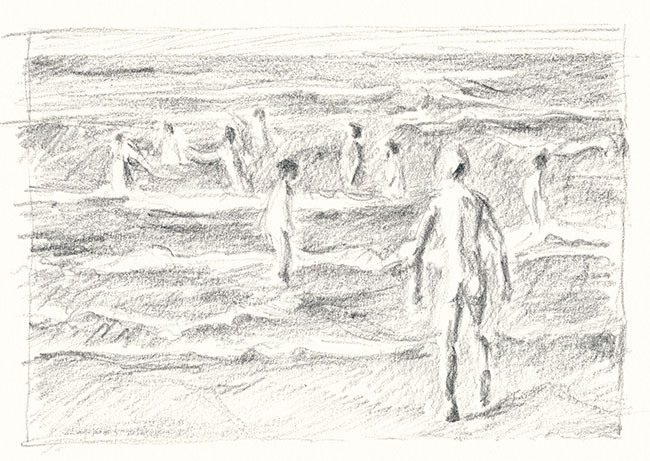 Zwischen 1895 und 1910 schuf Liebermann an der holländischen Küste zahlreiche Variationen der badenden Knaben in verschiedenen Techniken. Die im Freien entstandenen Bilder schildern das Freizeitvergnügen der Sommergäste.