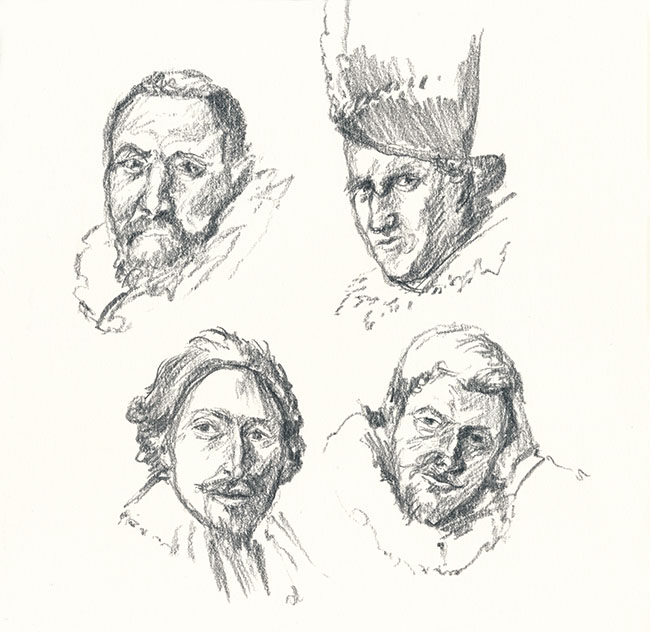 (Portraitskizzen aus drei verschiedenen Gemälden)