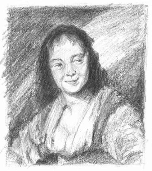 Hals ist ein Bildnismaler, der das Augenblickliche zu erfassen sucht, die Porträ-tierten karikaturhaft überhöht und sie in vereinfachter Charakteristik treffsicher zeichnet. "Frans Hals ist in den Niederlanden der erste, der die Kunst der Vergegenwärtigung beherrscht" und sein lockerer, temperamentvoller Farbauftrag, die in einem einzigen Zug hingeworfene Erscheinung, ist ohne Parallele in der gleichzeitigen Malerei (E. Hubala, Die Kunst des 17. Jh. Propyläen, S.56). Hals vernachlässigt das Detail, das Räumliche tritt zurück und alle Konzentration richtet sich auf den Ausdruck. Seine kraftvolle Pinselführung mag äusserlich an den Impressionismus erinnern. Doch die Erscheinung sitzt auf einer festen Form und die Dargestellten werden als Charaktere aufgefasst. Bezeichnend ist, dass Hals im späten 19. Jahrhundert wiederentdeckt wurde. Man bewunderte die Virtuosität seiner scheinbar spontanen Malerei und in seinen späteren Werken die in vielen Grautönen gebrochene schwarze Grundfarbe.